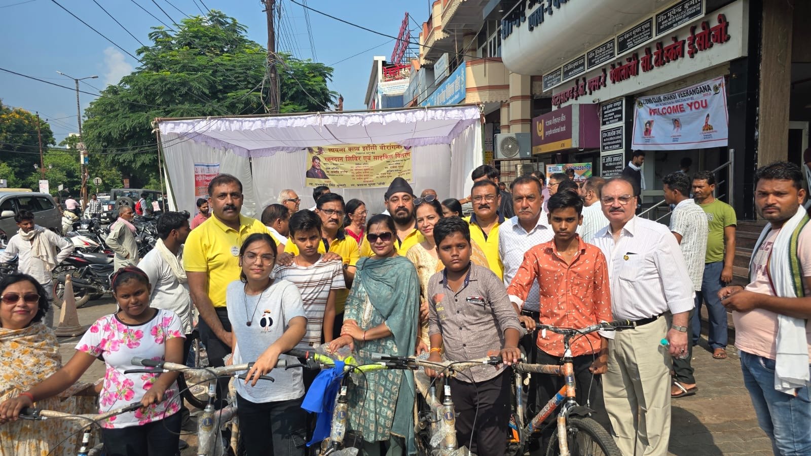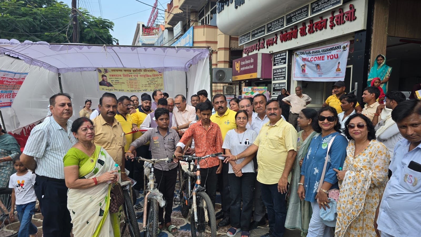 🩸 इस अवसर पर नवजीवन ब्लड सेंटर में 15 यूनिट रक्तदान 🅰️ किया गया और 11 साइकिलें 🚲 गरीब बच्चों को भेंट की गईं।